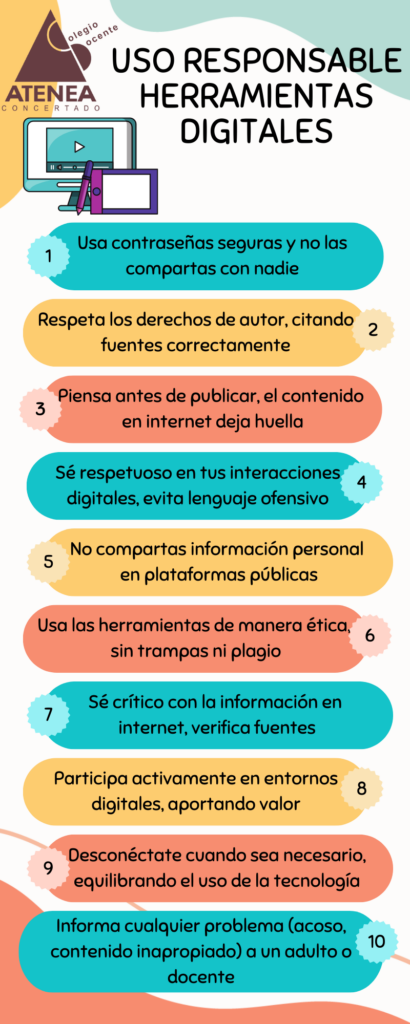 COMPETENCIA DIGITAL Estrategias clave para una videoconferencia accesible Herramientas de accesibilidad de windows Protocolo de Protección y Seguridad en la Red Anticípate a los problemas en el uso de los contenidos digitales Sobre tus credenciales Decálogo para el uso responsable de las herramientas digitales Decálogo para la Protección y Seguridad en la Red Guía para Crear Itinerarios de Aprendizaje Personalizados Plan de Comunicación Colegio Atenea Búsqueda y Gestión de Recursos Educativos